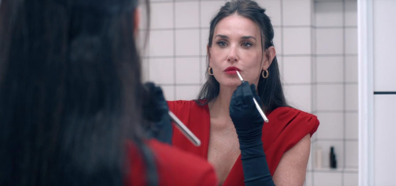 I screamed, I hid behind my fingers, I held my breath, and I laughed like hell — often in the same few minutes. Coralie Fargeat delivers a symphony of gore and debasement that demands to be watched in a packed cinema with everyone losing their minds. Yet no matter how insane The Substance gets (and it gets pretty damn insane), at its core is an all-too-familiar image: a middle-aged woman studying her reflection in the mirror, unable to find the beauty in the face staring back at her, and driven by this terrible lack to obliterate herself. None of the bloodshed is quite as stomach-churning as the scene in which Elisabeth (Demi Moore) cannot bring herself to leave the house for a low-stakes dinner with an old high school admirer — imprisoned by the impossibility of measuring up to her younger, “better” self.